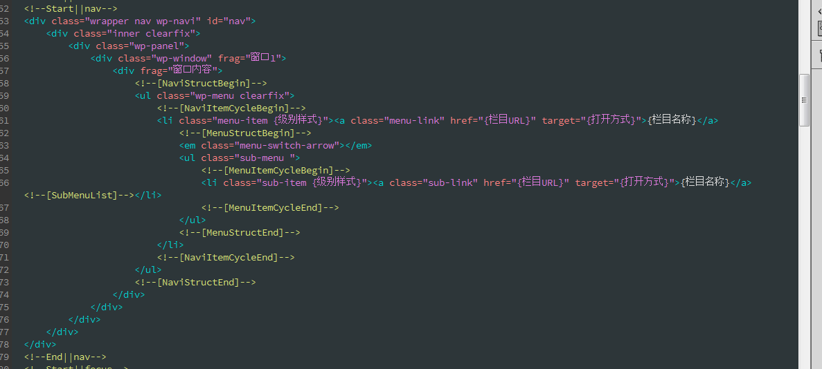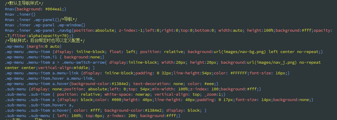 说明:如图该通用模板导航nav部分,除了引用的系统默认样式,还可以修改样式表(图5-3)进行修改对应样式, 或者直接在后台可以配置样式。