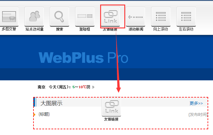 找到友情链接所需要的位置,绑定“友情链接”组件。(注:如何配置窗口请查看链接:http://pro.webplus.net.cn/_s80/2015/1123/c1234a20123/page.psp)