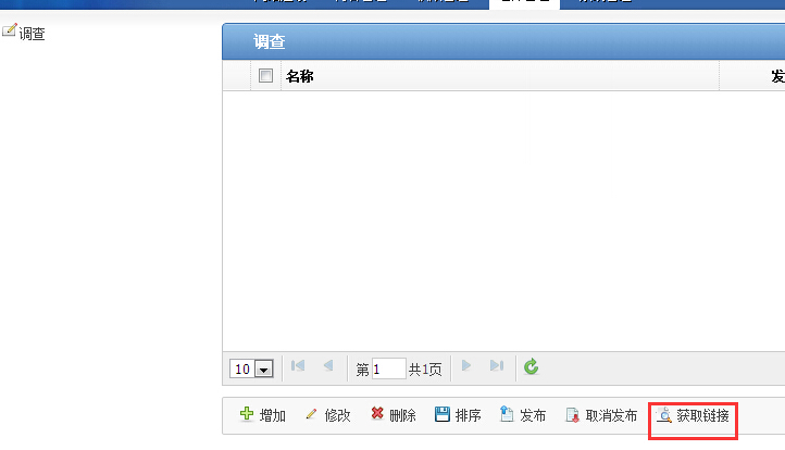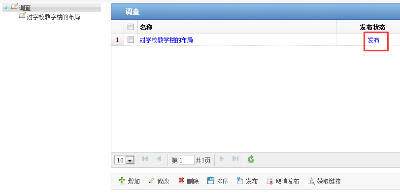 添加调查的主题名称(注:主题名称要想在页面显示,必须是发布状态)