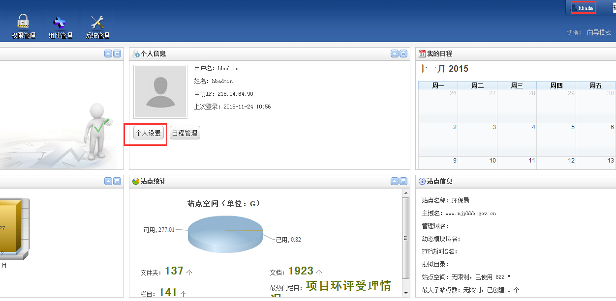 点击“个人设置”后,会看到密码信息,可以修改自己的密码。(前提记住自己原先的密码是什么)