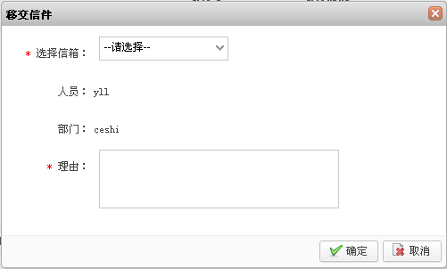 2) 设置移交信息,单击“确定”,信件移交成功。