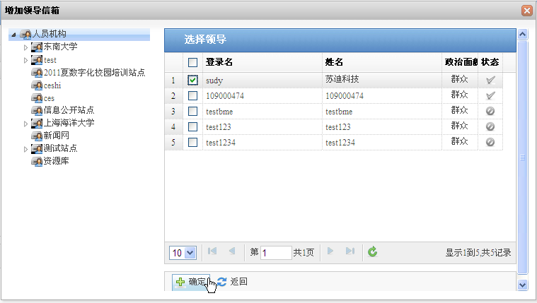 3) 单击“确定”,增加领导信箱成功。