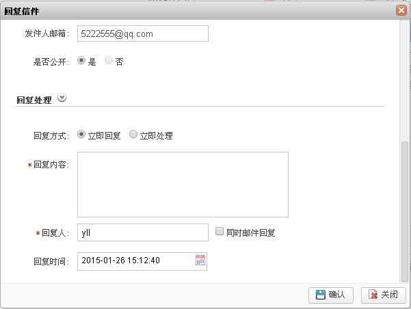 2) 根据页面提示,回复/处理信件内容。