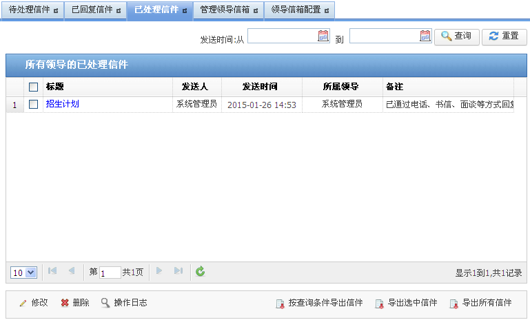 系统展示“已处理信件”管理页面,如图 1-28所示。
