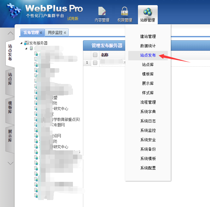 1、在系统站点下,选中站群管理,点击站点发布;