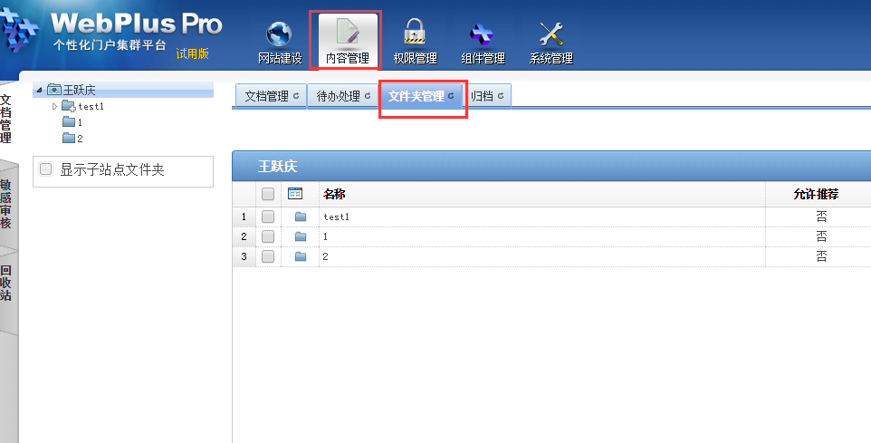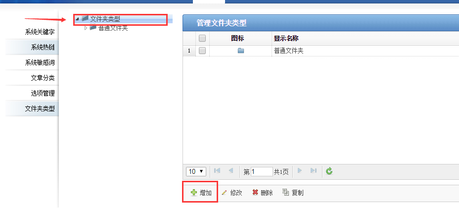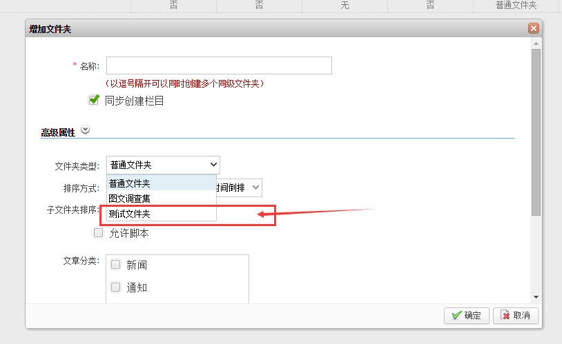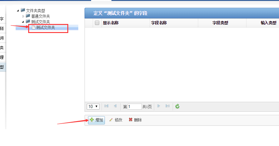 9、增加一个文件夹,增加的时候选中下文件夹类型,然后这个文件夹就会多一扩展字段;