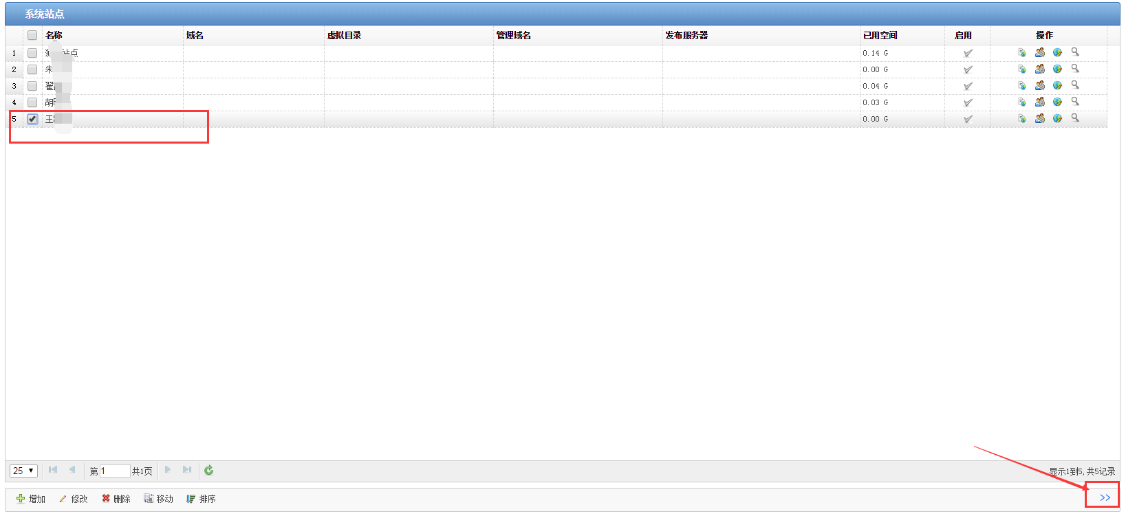 6、选中需要添加字段的站点,展开下面的更多选项;