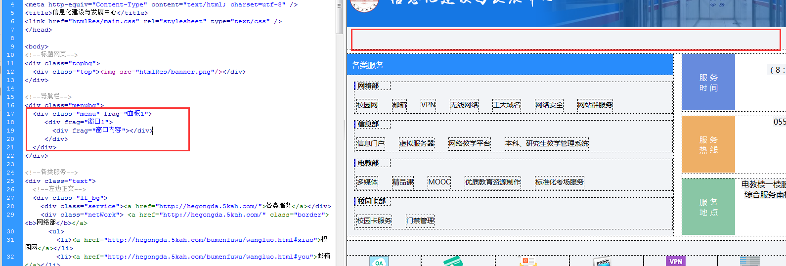 第二步需要把复制过来的网页模板下载下来,用Dreamweaver或者其他网页编辑器打开模板页,把各模块里面的静态的数据删除掉。(下图红框圈出的,都是要删掉的)。