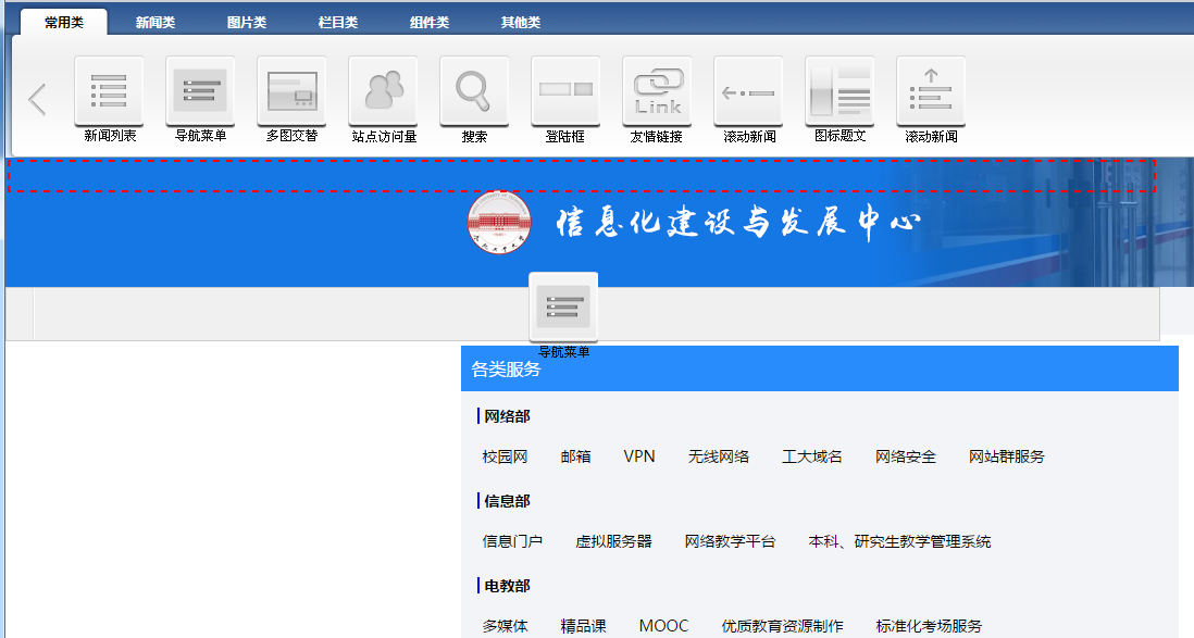 第六步把模板上传到后台,然后进行模板的绑定,在模板配置页面拖动组件来完成各模块的填充,在配置模板的时候,需要对照原网站样式,来进行配置绑定的新闻条数、字符长度、缩略图大小、发布时间等一系列的基本参数。