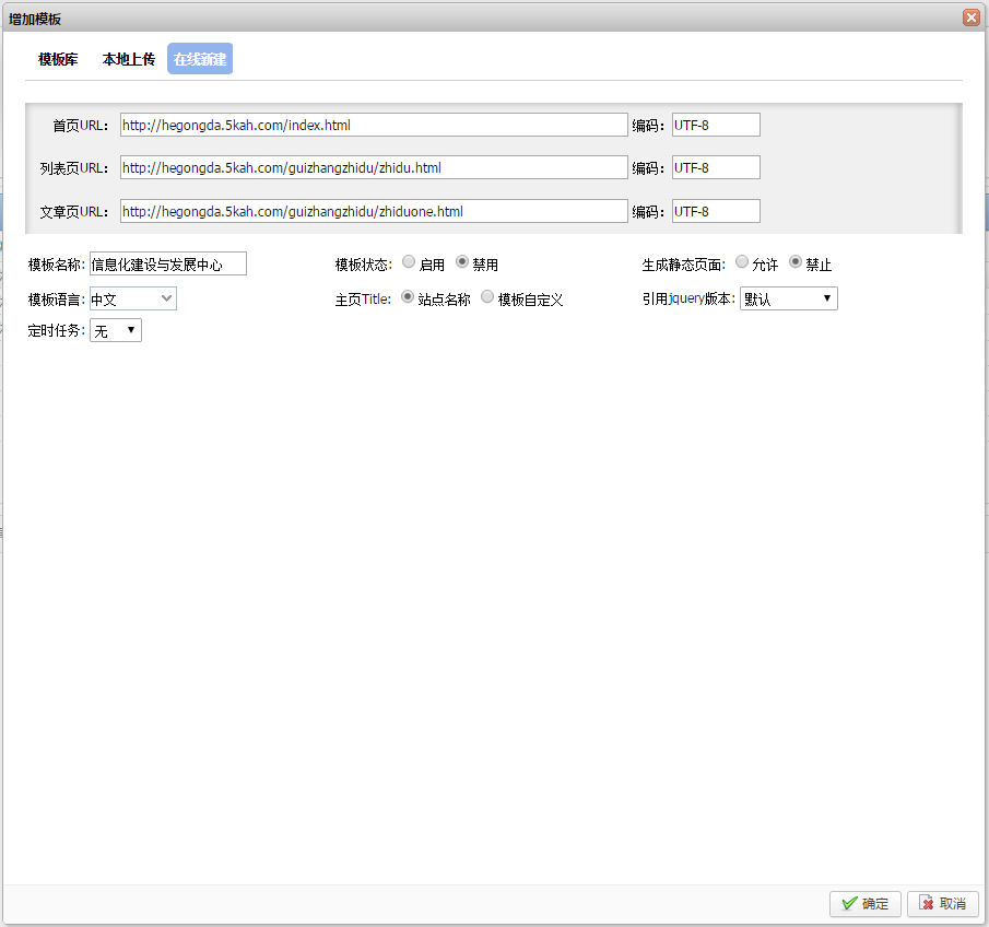 第一步使用我们webplus平台中的在线新建功能(网站建设>模板管理>增加模板>在线新建),把老网站的静态页面拷贝到后台。