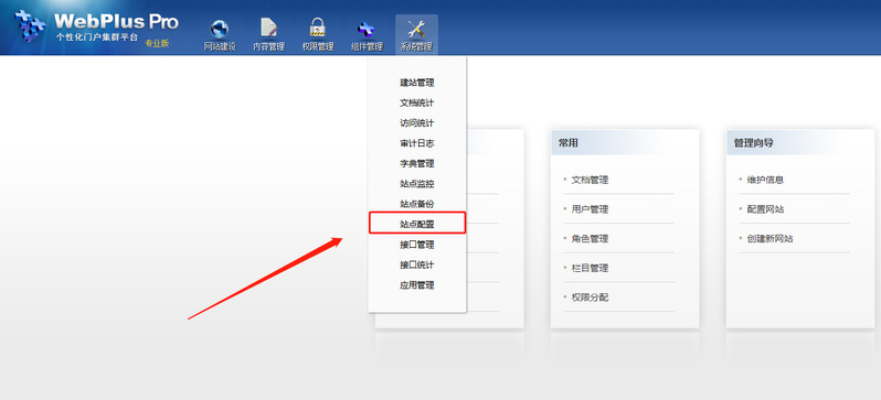 进入网站群后台,点击【系统管理】-【站点配置】;