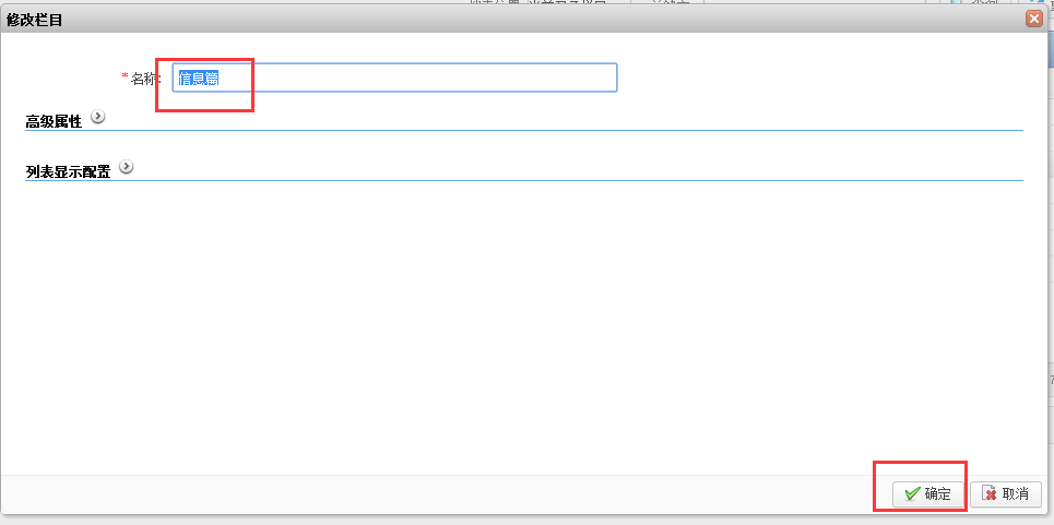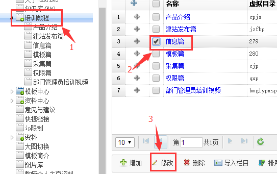 左侧选择待修改栏目的父栏目,右侧勾选子栏目,点击修改按钮