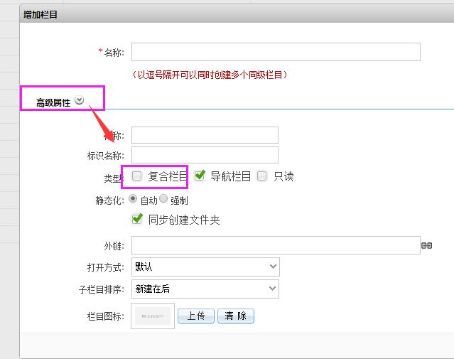 栏目管理,增加栏目;在高级属性-类型中,勾选上“复合栏目”;