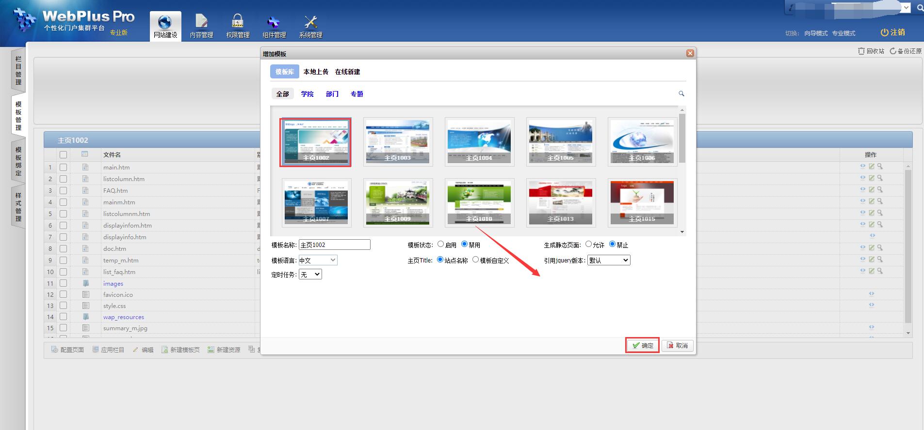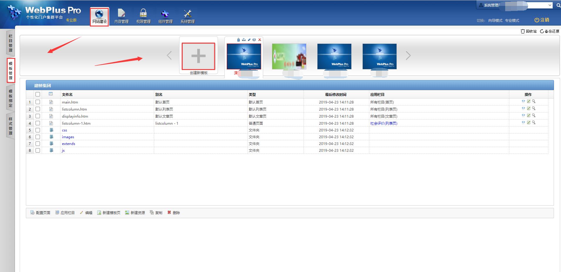 选择对应的站点,点击【网站建设】-【模板管理】点击“创建新模版”;