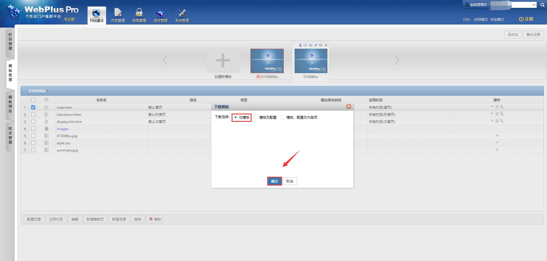 【网站建设】-【模板管理】,选择需要的模板,点击“下载”按钮: