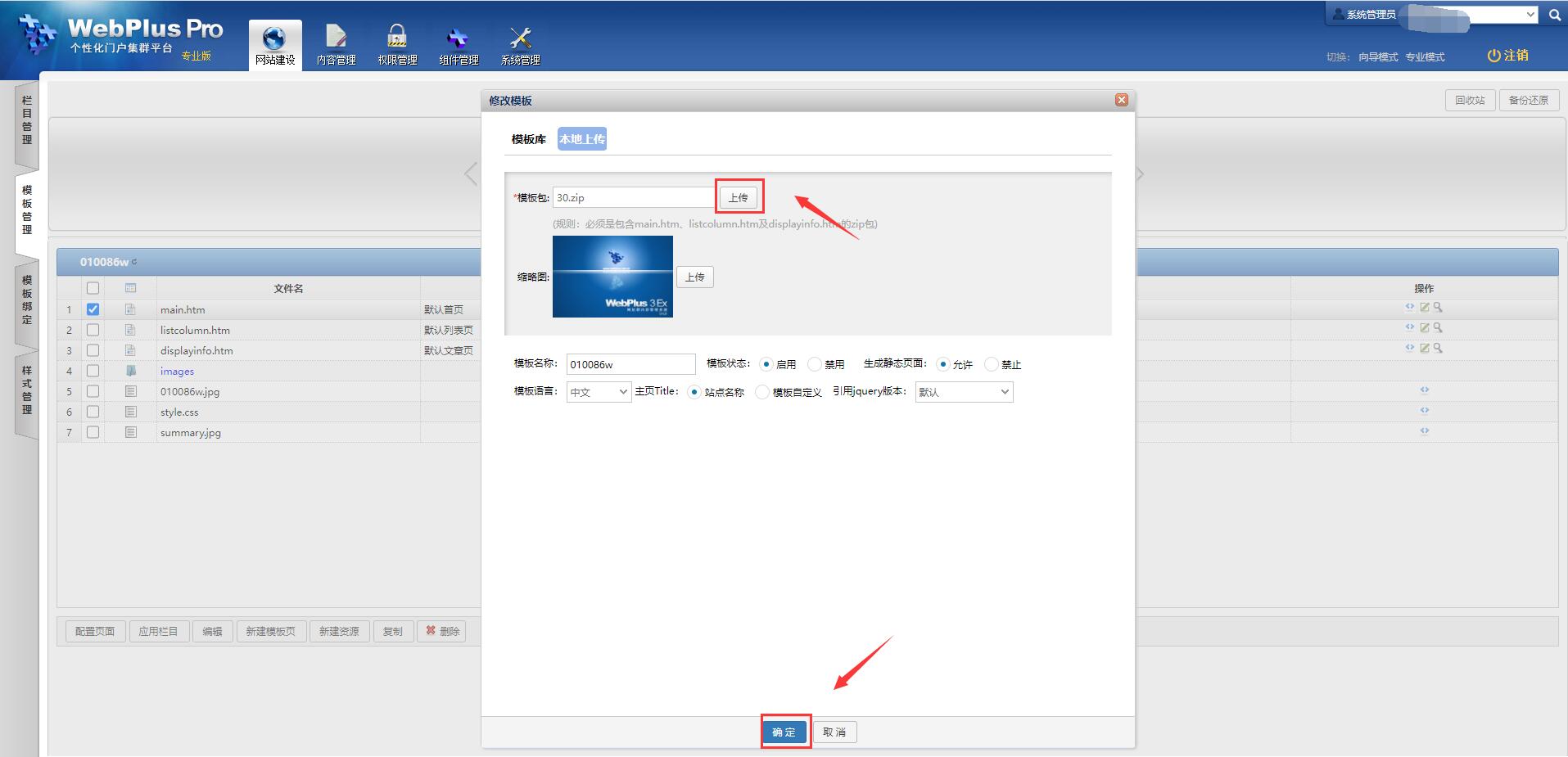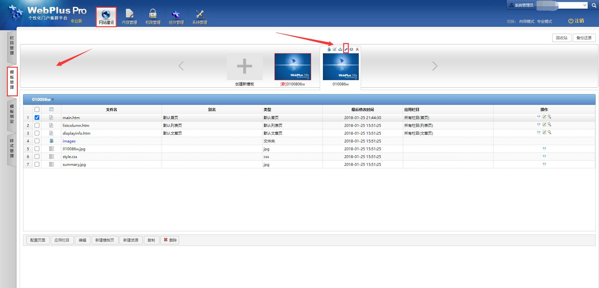 【网站建设】-【模板管理】,选择要上传的模板,点击“编辑”按钮;