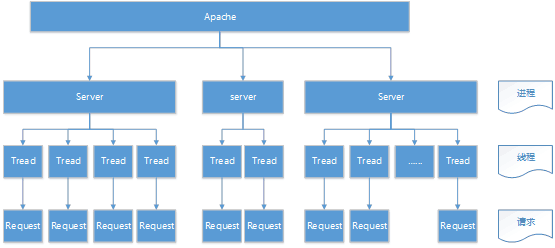worker是2.0版中全新的支持多线程和多进程混合模型的MPM。由于使用线程来处理,所以可以处理相对海量的请求,而系统资源的开销要小于基于进程的服务器。但是,worker也使用了多进程,每个进程又生成多个线程,以获得基于进程服务器的稳定性。