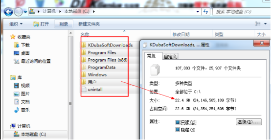 原因:查看C盘下的所有文件,发现有隐藏的多余文件