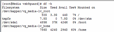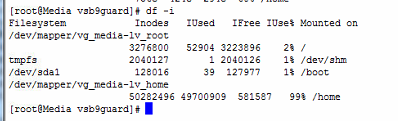 磁盘无法写入数据,但查了使用量并没有满(本服务器/home/vsb9guard软连接到了/opt/vsb9guard),如下图: