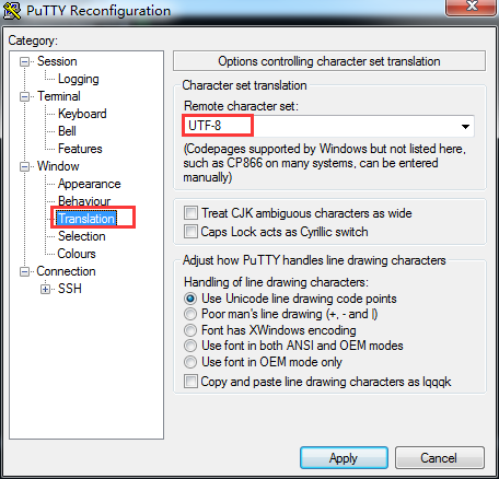 Putty工具连接服务器命令行中文显示乱码