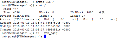 修改/etc/passwd,将vsb_pgsql的home修改成/tmp,把/tmp设置为777,而su出现同样的错误。