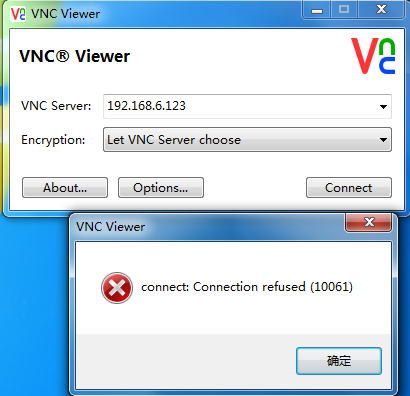 从vnc view登录时,提示connection refused(10061)解决办法