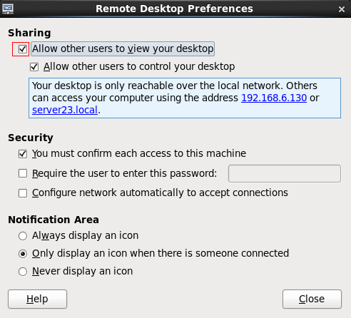 如果从vnc view登录时,提示connection refused(10061),则是因为linux防火墙的问题,登录centos系统,选择System–>Preferences–>Remote Desktop,勾选sharing中的两项,Security两项不勾,点击关闭,然后再重新用vnc view登录即可。
