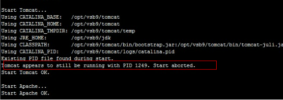 已存在pid文件。Linux下Pid文件为记录进程号的文件。正常关闭VSB时,此文件自动删除,启动时自动生成。异常关机可能导致此文件不删除,从而导致再次启动时报错。