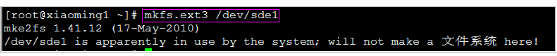 /dev/sde1 正在被DM管理所以我们创建文件系统时提示报错