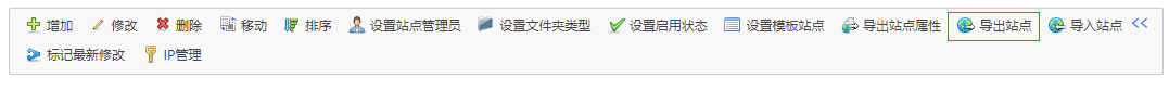 1、进入需要导出的环境中的系统站点:/系统管理/建站管理,点击工具栏的“>>”按钮