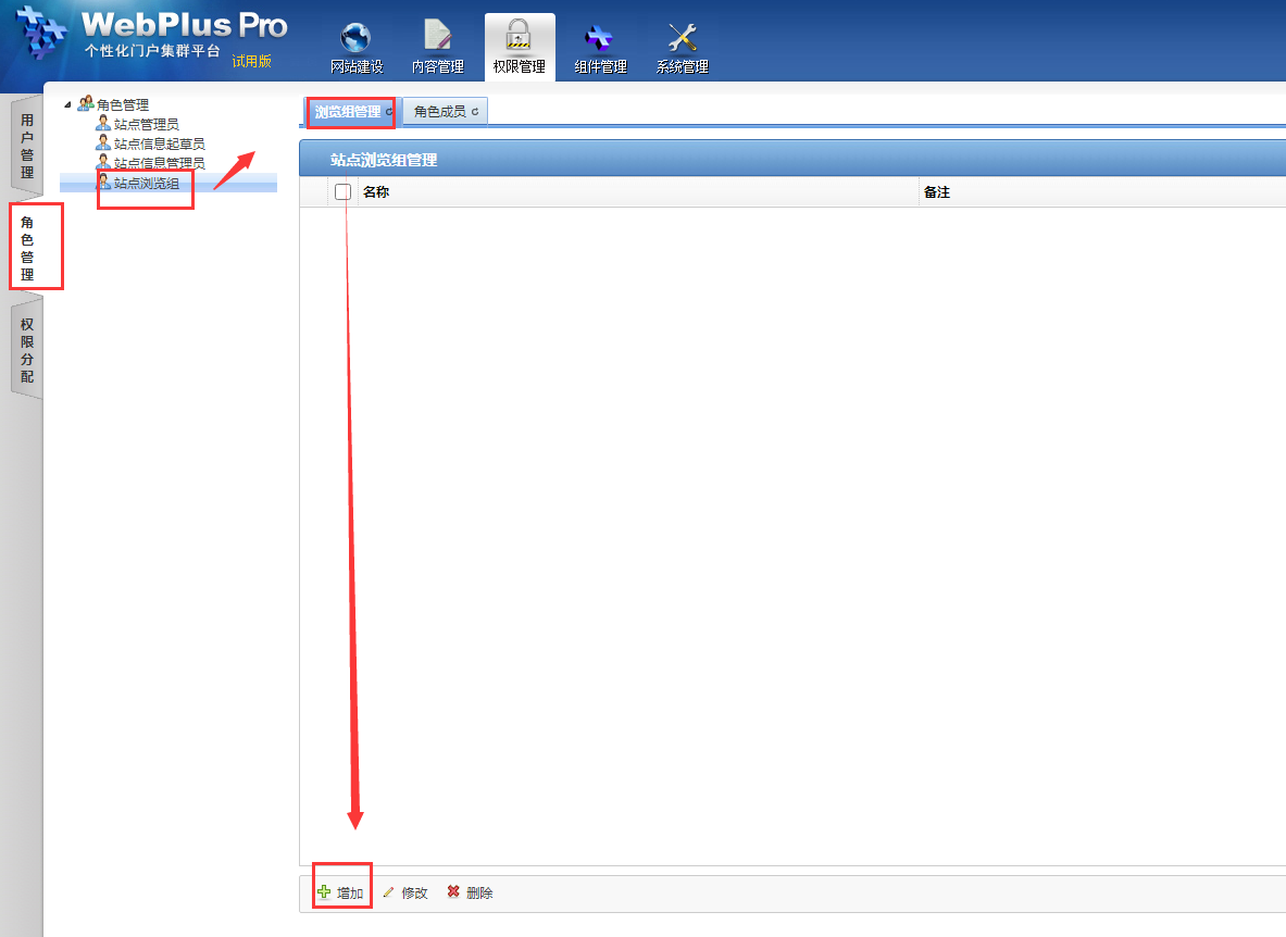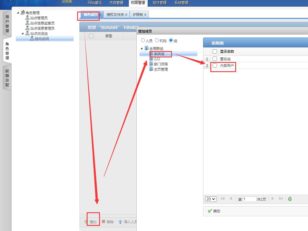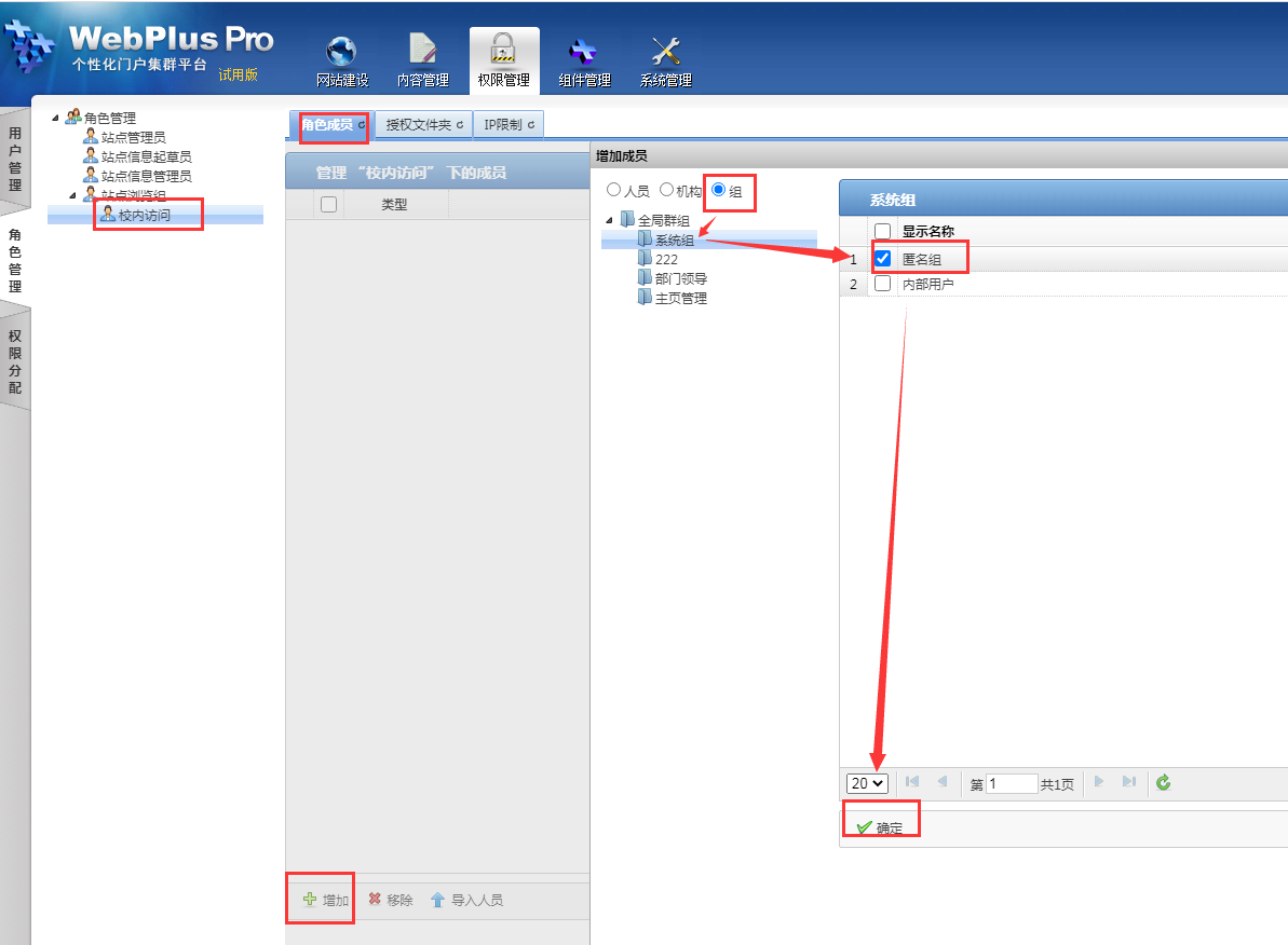 第一个浏览组,角色成员导入“匿名组”