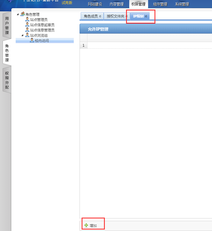 实现校内直接访问,校外不可以访问,给文章(栏目)勾选第一个浏览组