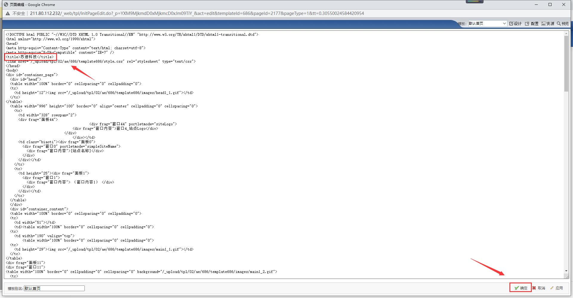 在头部的title处写上需要显示的title名称,修改完成点击“确定”: