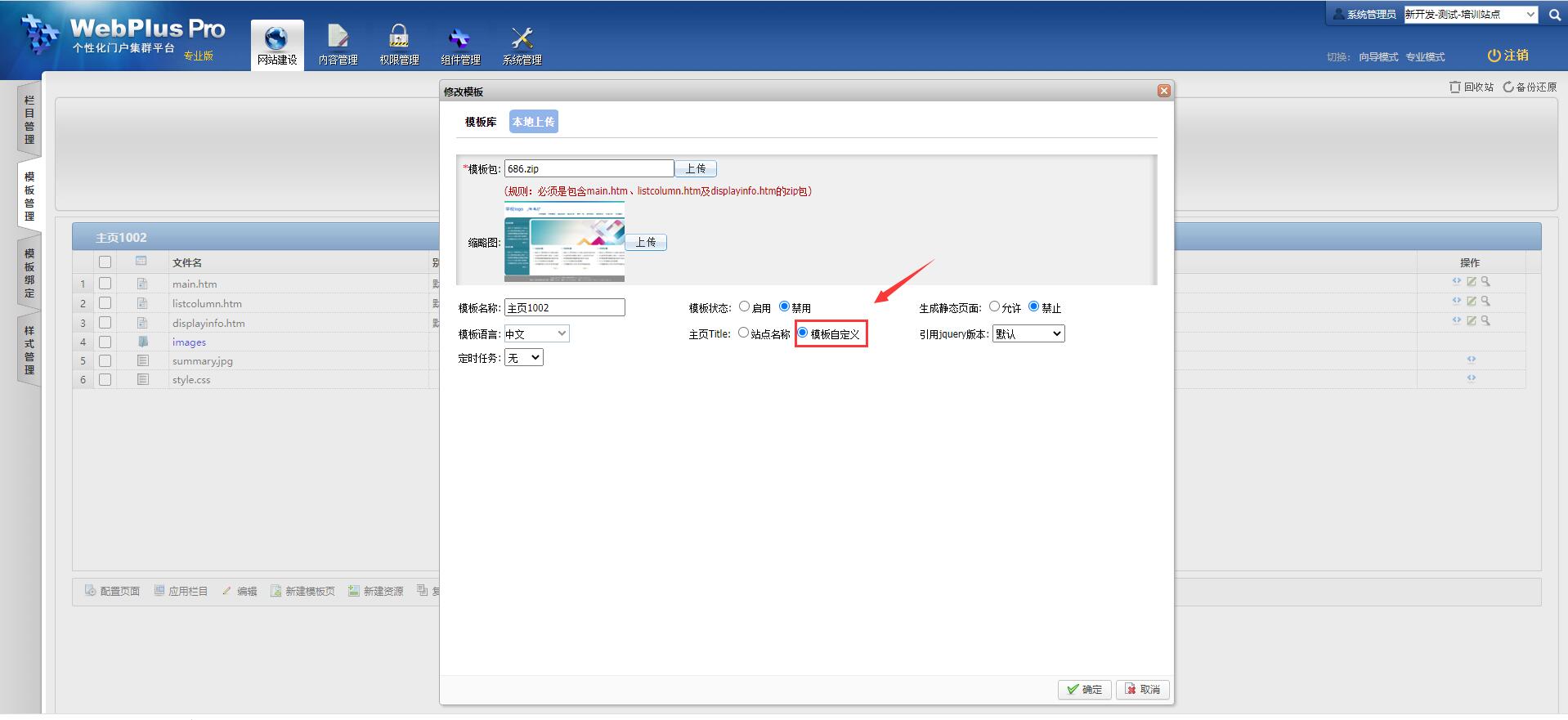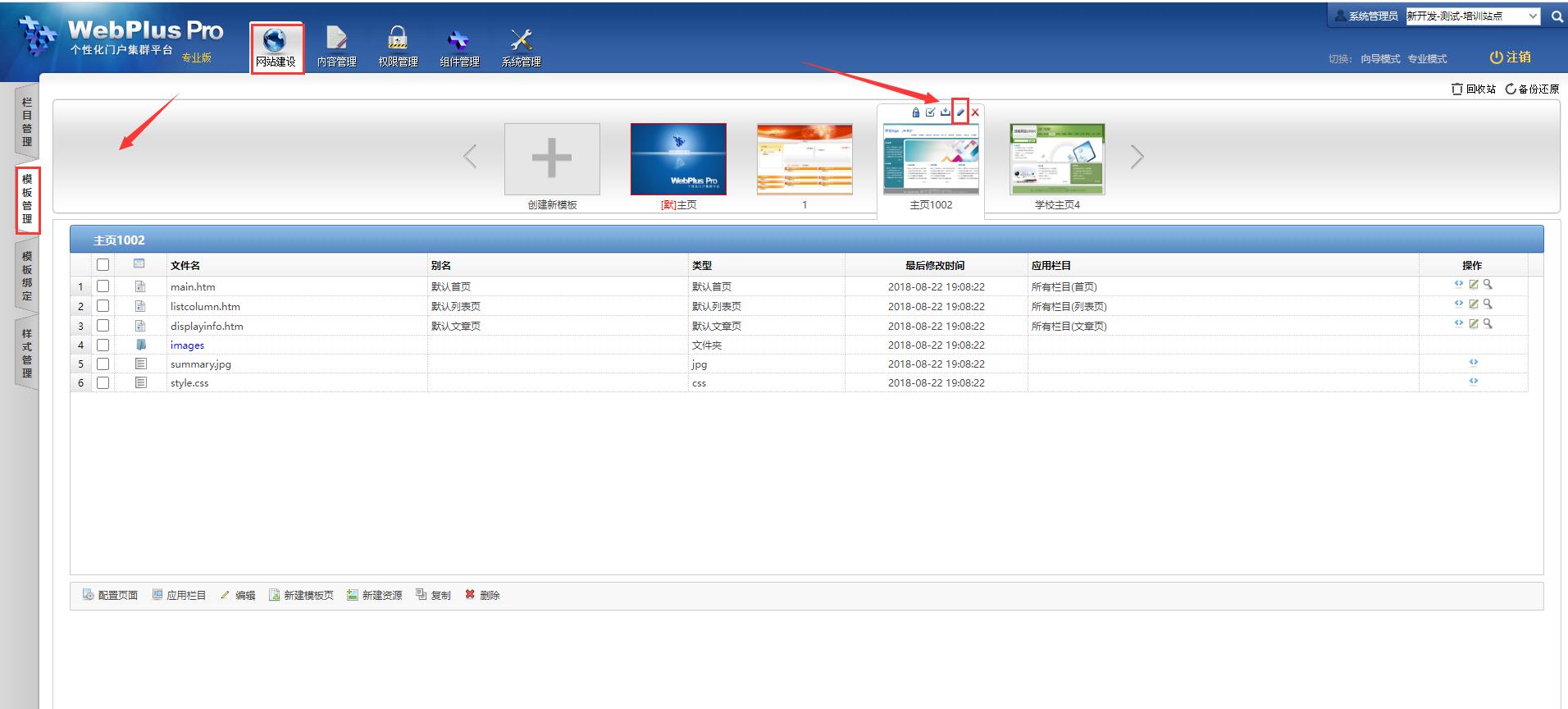 如果您想要调用模板中的“title”,点击【网站建设】-【模板管理】,选择您需要的模板,点击“编辑”按钮: