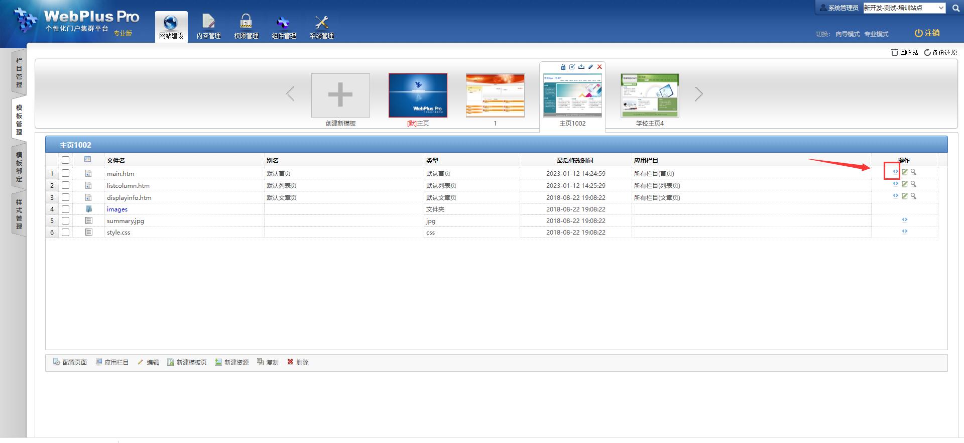 在main.htm模板页,点击下图按钮: