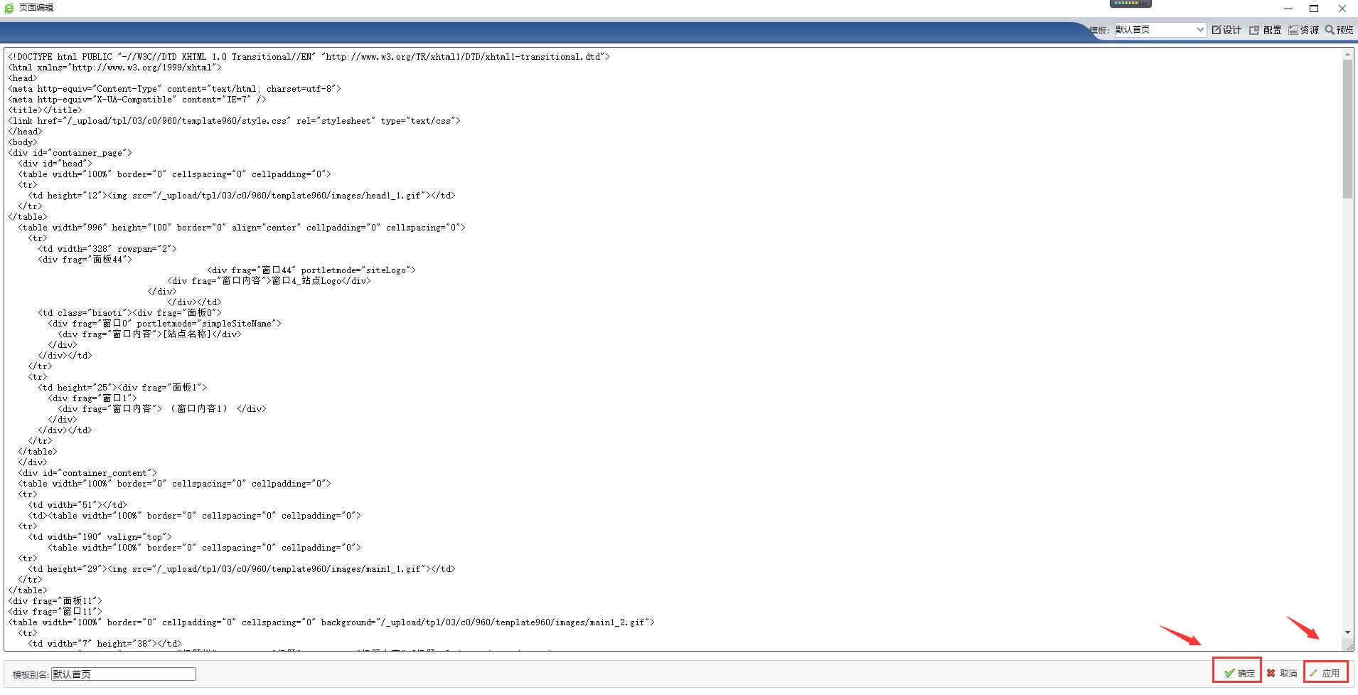 在线修改代码,修改完成后,右侧下方点击“确定”或“应用”: