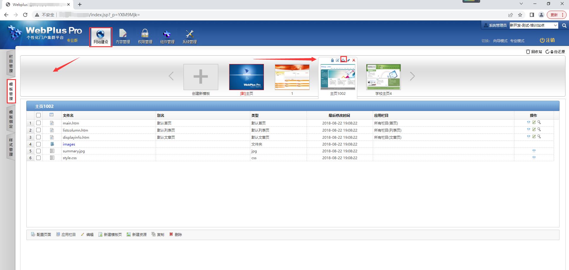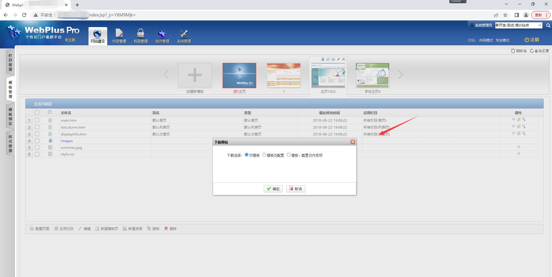 点击【网站建设】-【模板管理】,选中模板点击“下载”按钮进行下载;
