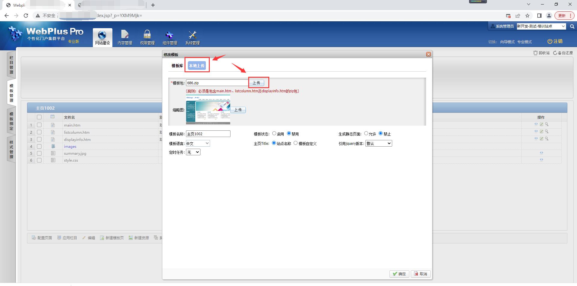 选中模板,点击“编辑”按钮,上传修改后的模板zip文件