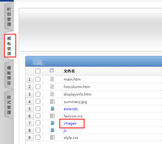 由上图得知,这张图片在后台的32号模板,images这个文件夹下。后台点击模板管理,找到文件夹