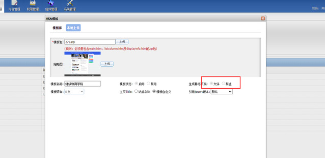 查看该站点的默认模板是否禁止生成静态页面,点击允许重新生成即可