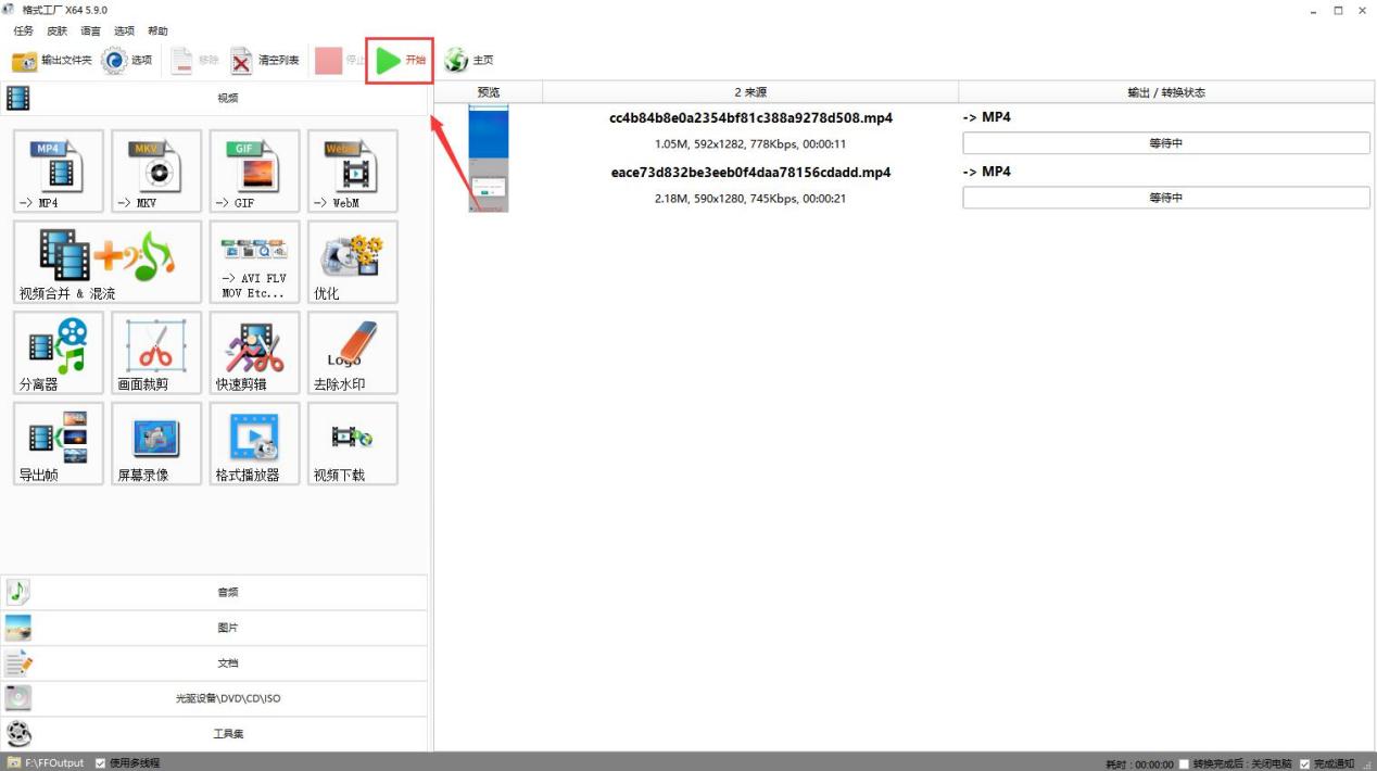 步骤五:完成以上操作,点击“开始”键开始转换视频,等待完成即可。