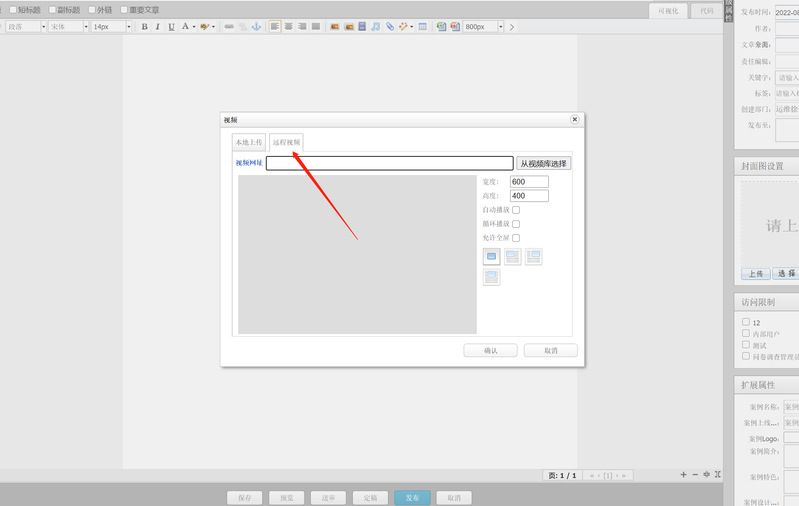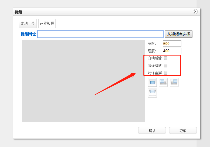 注意:若直接放加了别的网站编辑框的视频代码(即非视频源代码),可能会造成上传视频打不开,或者下图红框处设置不生效等问题。