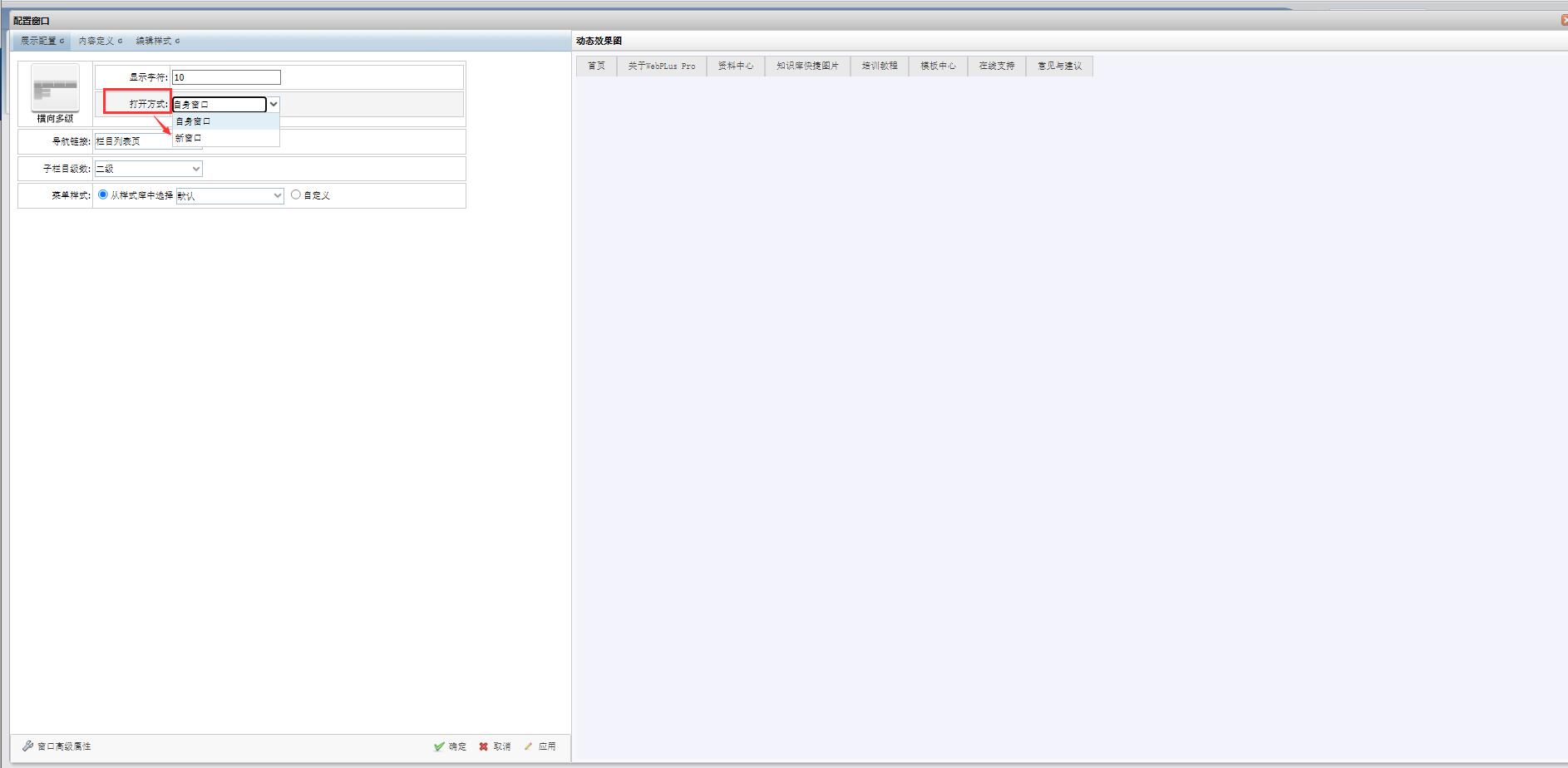 在弹出的对话框里,找到打开方式,设置为“新窗口”,保存。