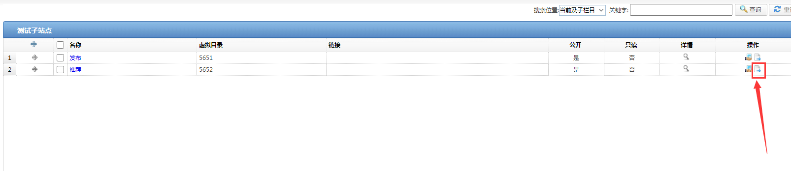 ) 最右侧“操作”这里,选择右侧按钮,可查看栏目下文章