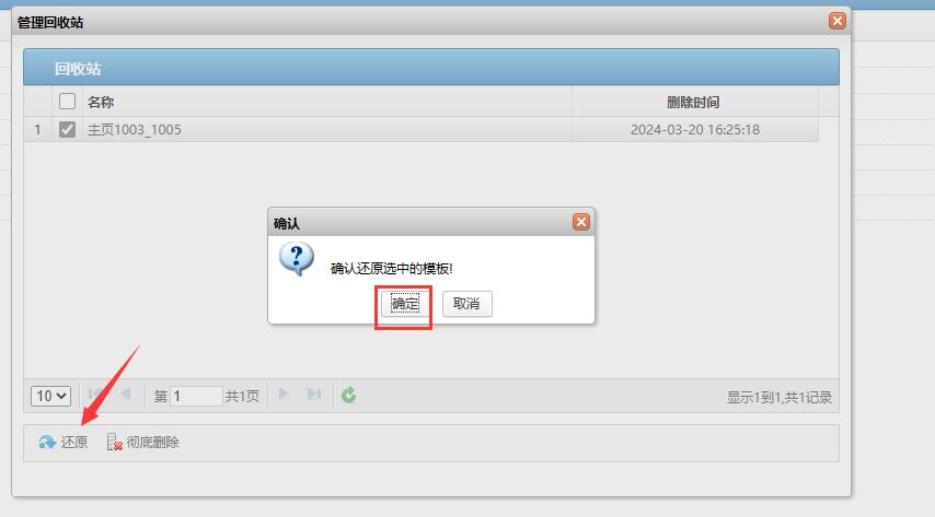注:想要还原哪个模板,就在回收站里选中对应模板就可!